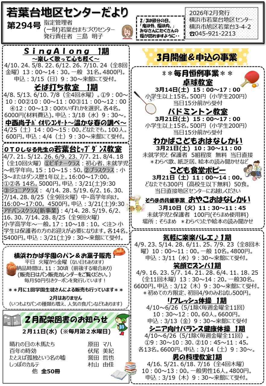 若葉台地区センターだより第292号をお届けします