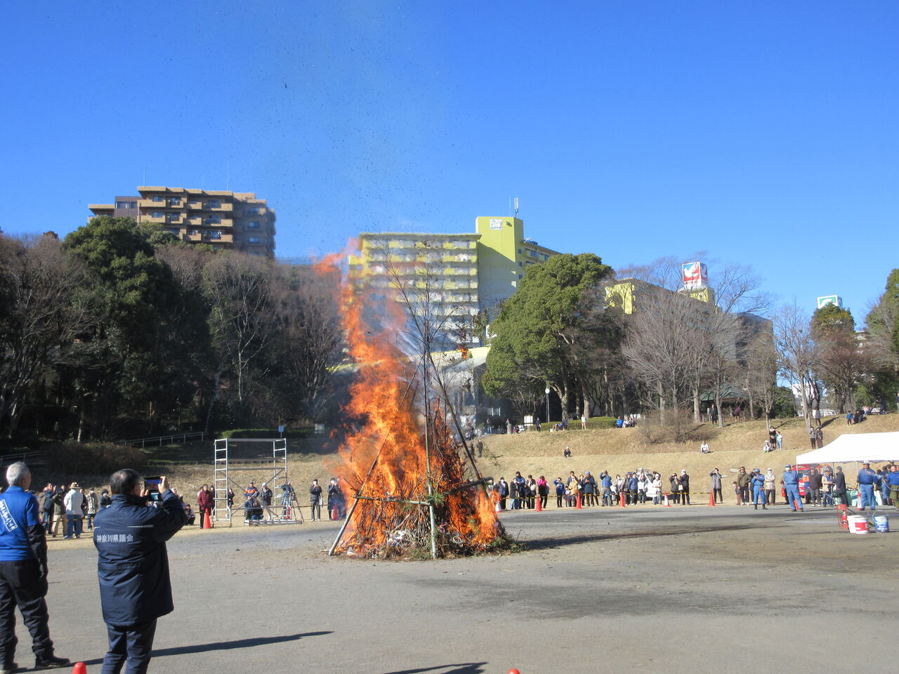 1月12日㈪㈷に若葉台多目的グラウンドで若葉台どんど焼きが開催された。昨日は非常に強い風が吹き荒れ、本日も実施できるか懸念したのですが、一夜明けると風もなく穏やかな晴天となった。