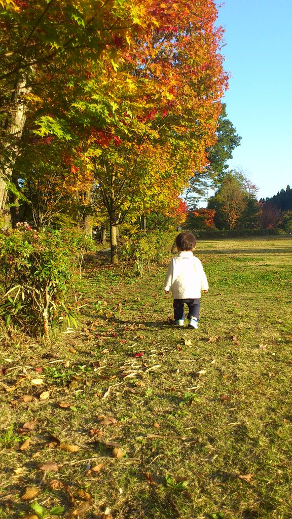 写真は紅葉を楽しむ次男です。