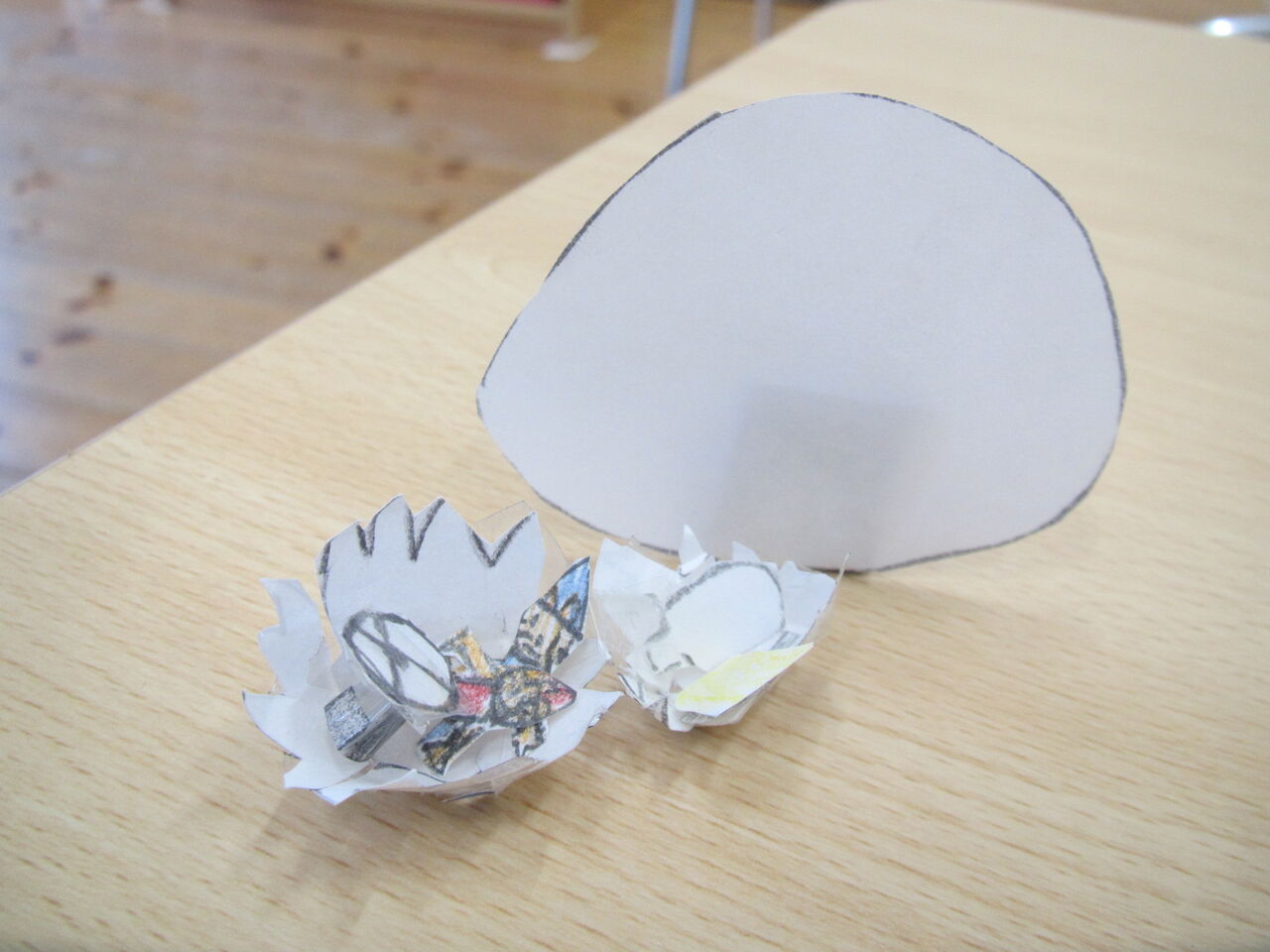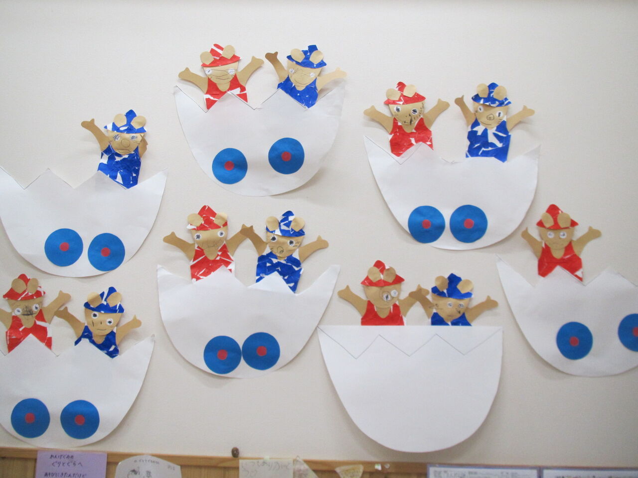 202012月4 えほんカフェは中止となりました 楽しみにしていた絵本カフェですが新型コロナウイルスの感染拡大を受け中止とさせていただくことになりました。その代わりとして保護者の皆様には今までのおはなしの国に入ってあそぼうでの取り組みや園外保育などの絵本を中心とした保育の様子の展示を見て頂く機会を設けました。他にも園庭のどんぐりや秋の自然物を利用した作品の展示などもしていますのでお楽しみに!細かい日時は追って連絡させていただきますのでよろしくお願いします。子ども達はぐりとぐらの世界を今も楽しんでくれています年長児が作ったとても小さなぐりとぐらの車です2才児は壁面製作でぐりとぐらを作っています