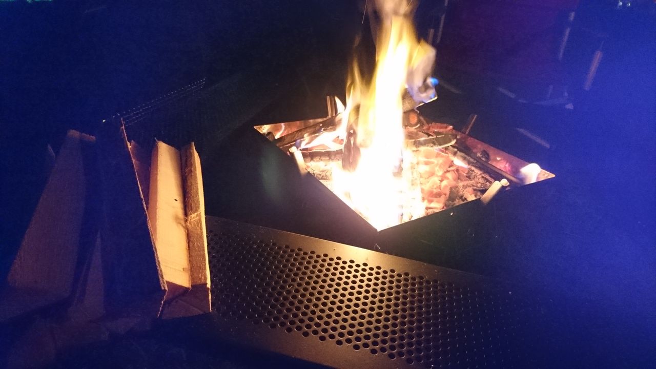 夜は焚き火と