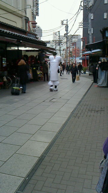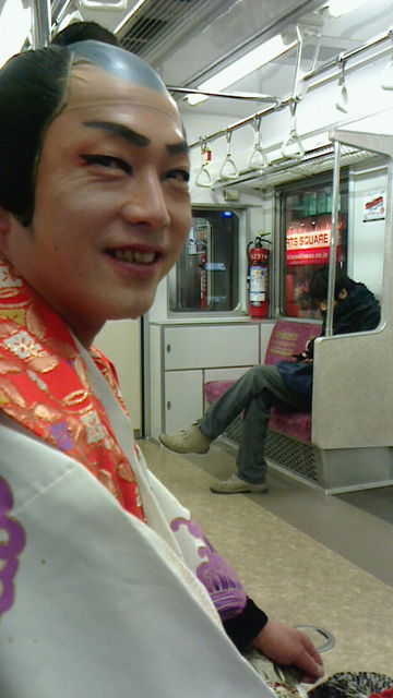 くる時はこの格好のまま満員電車に乗って来たそうです。