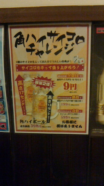 合計が奇数だと 大ジョッキ 一杯598円