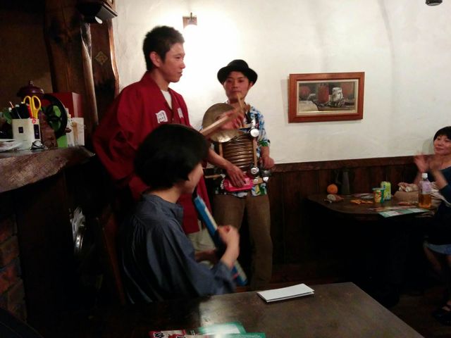 2014年05月29日 喫茶店ライヴ 昨日は吉祥寺に行って来ました。 カンカラ三線の岡大介さんにお声をかけて頂きまして喫茶店の「立吉」さんで喋らせて頂きましたよ! こちらのライヴはいつも音楽を聴いていただくライブ出そうで、お笑いが入るのは初めてとの事。 ちょっと緊張しましたねー 出演は ボードビリアン バロン 漫談 風呂わく三 カンカラ三線 岡大介 最後には、サヨさんのピアニカも加わり全員でお風呂体操までやってしまいました。 いつもと違う雰囲気の中、楽しくやらせて頂きました☆
