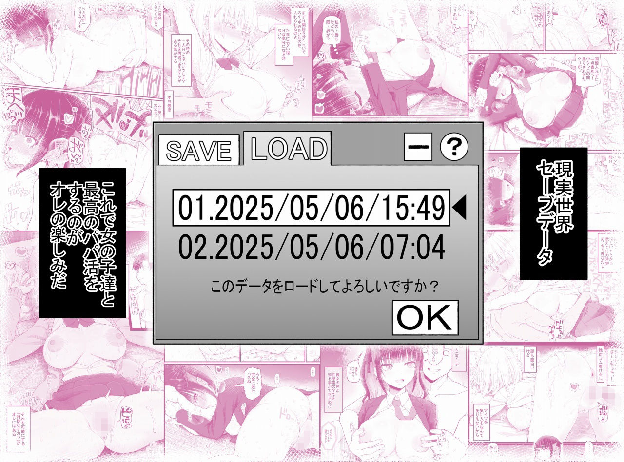 ■男は現実世界で使えるセーブデータを手に入れた。今を何度でもやり直せるようになったのだ。彼はコレで最高のパパ活をする事に決めた。