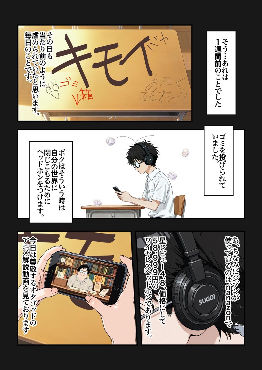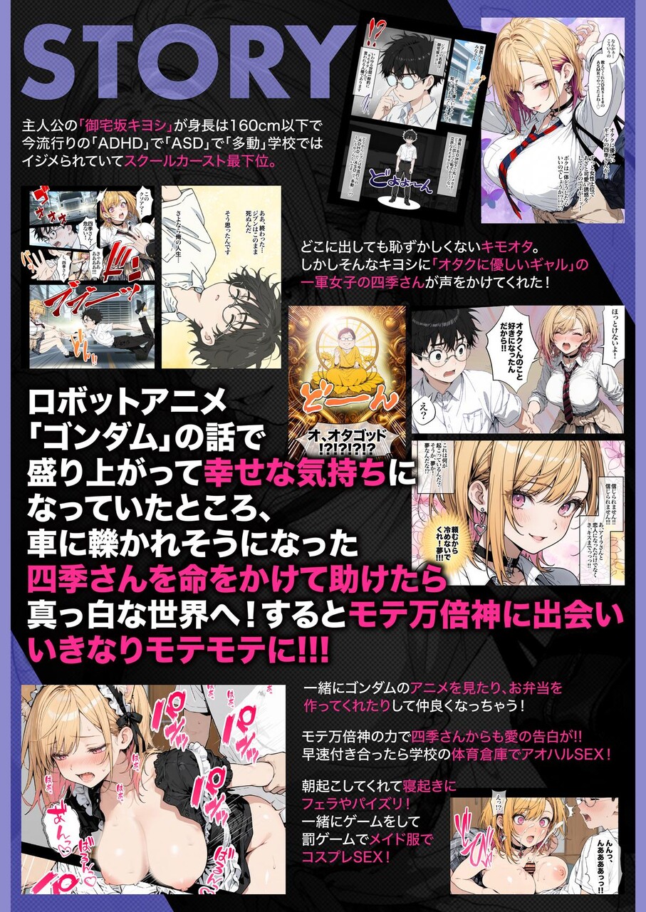 主人公の「御宅坂キヨシ」が身長は160cm以下で今流行りの「ADHD」で「ASD」で「多動」学校ではイジメられていてスクールカースト最下位。どこに出しても恥ずかしくないキモオタ。