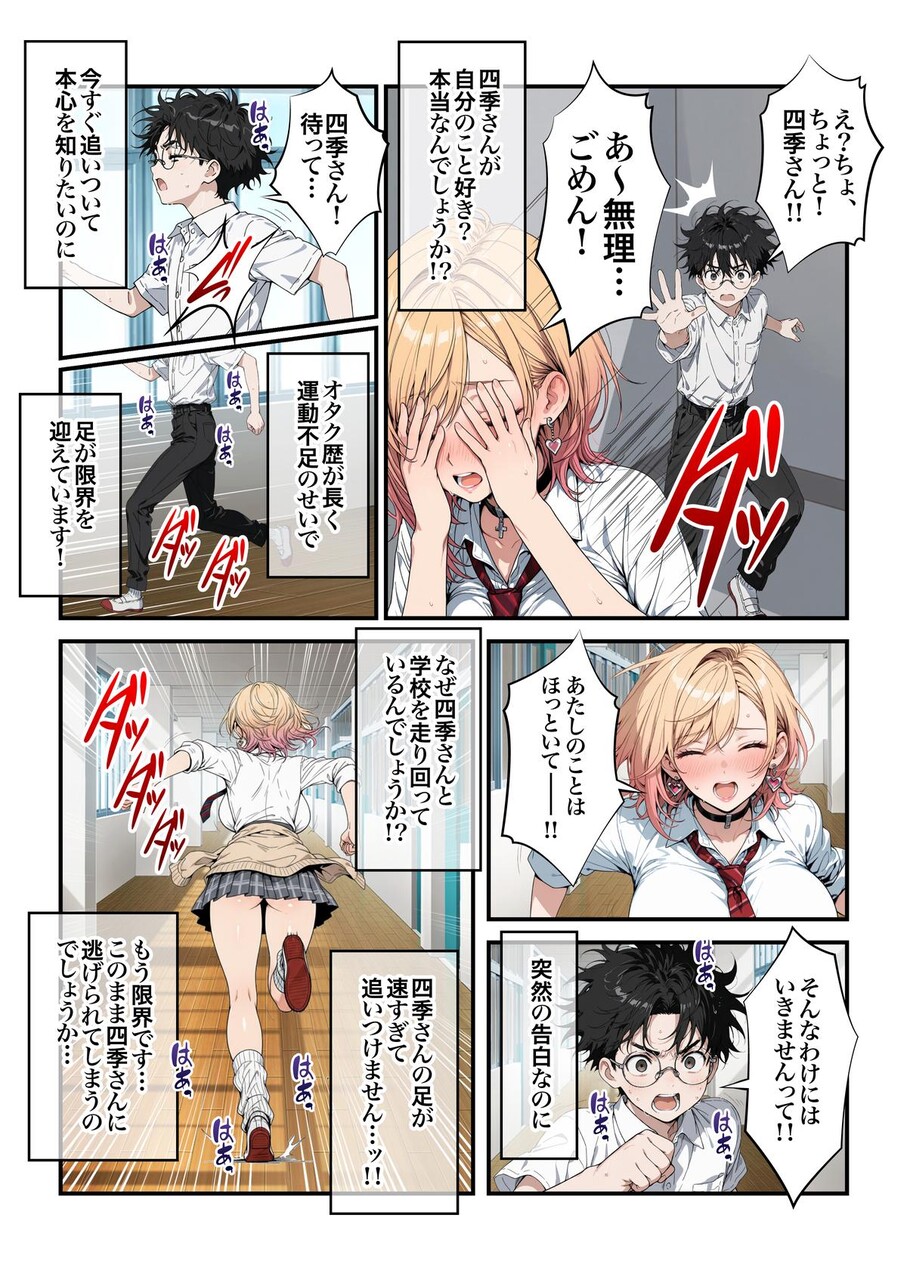 しかしそんなキヨシに「オタクに優しいギャル」の一軍女子の四季さんが声をかけてくれた! ロボットアニメ「ゴンダム」の話で盛り上がって幸せな気持ちになっていたところ、車に轢かれそうになった四季さんを命をかけて助けたら、真っ白な世界に飛ばされる!