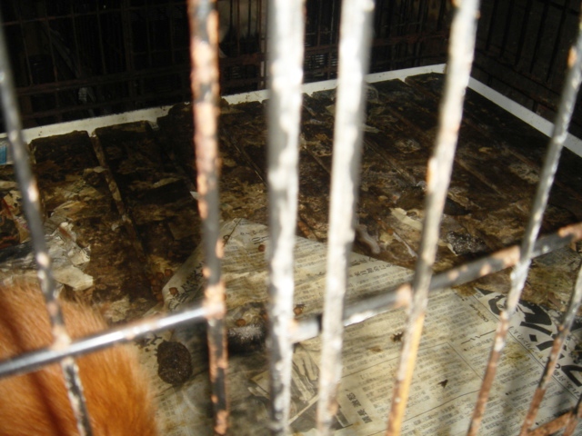 ケージも床も、糞尿でズルズルドロドロ・・・