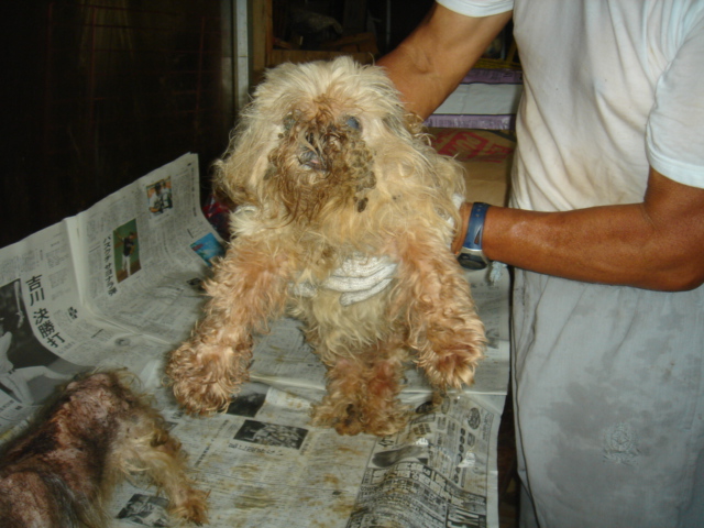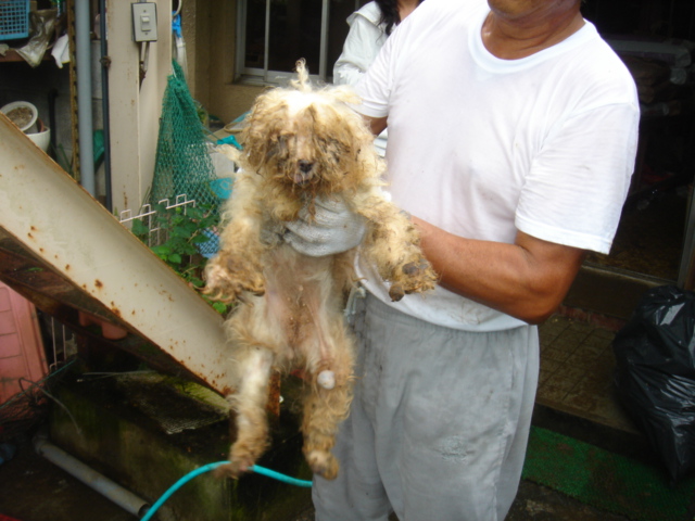 『あと、奥の部屋に、もっとヒドイ状態の子が5匹いるんですが・・・。もう、以前から飼い主に処分せんかぁゆうてたんですが、殺すのはかわいそうやゆうて、そのまま置いてるんですが・・・。どうされますか?』