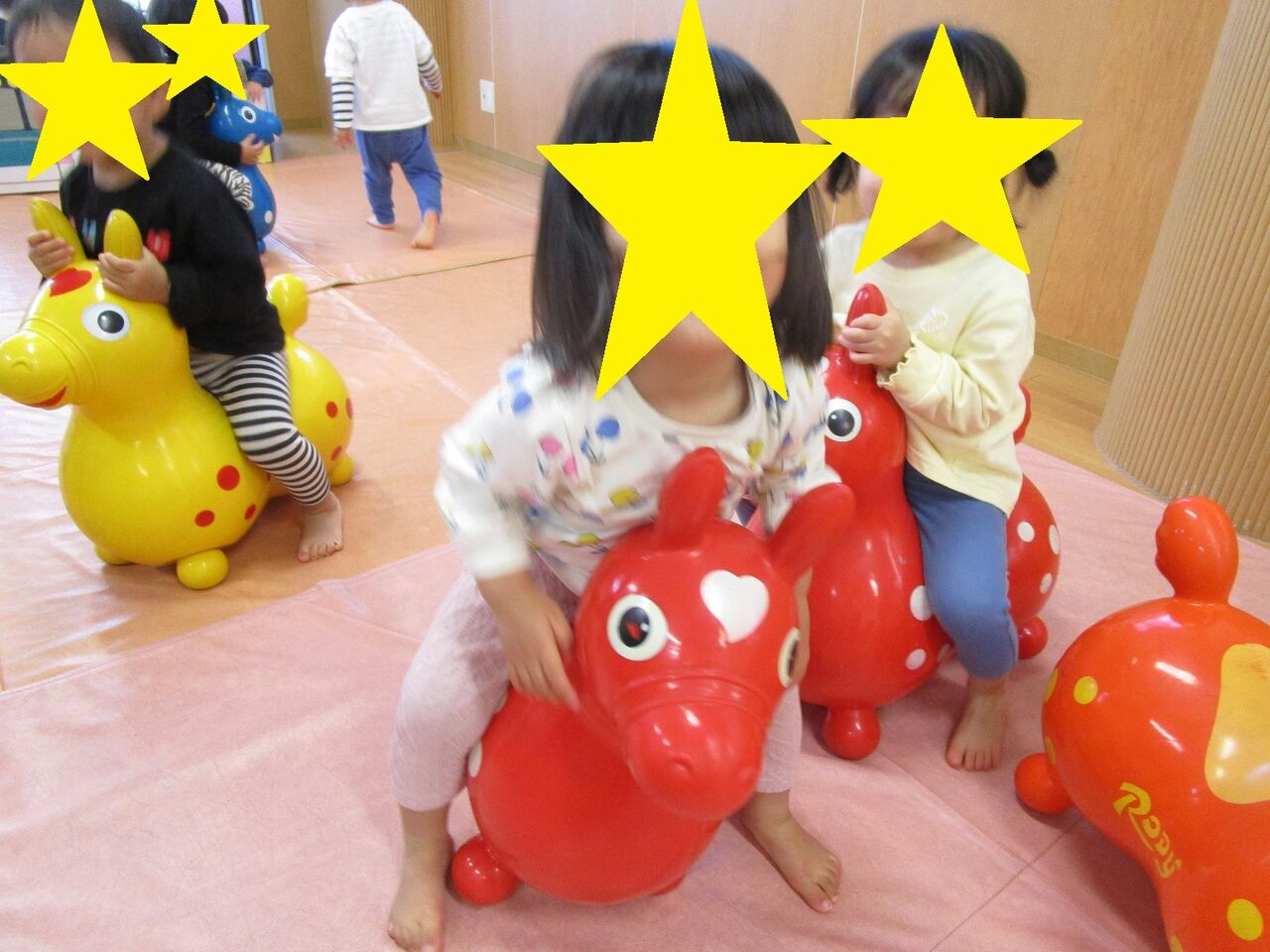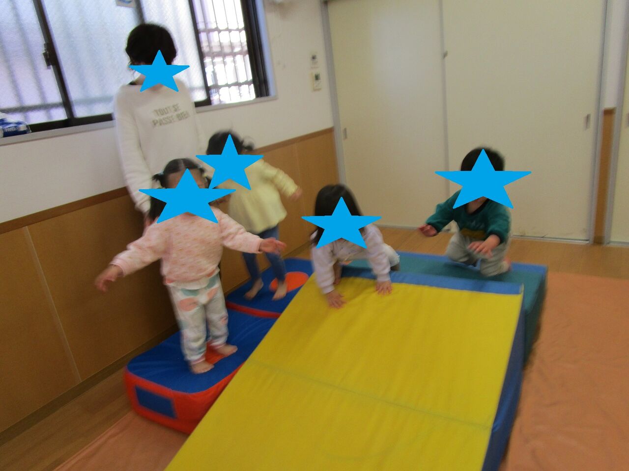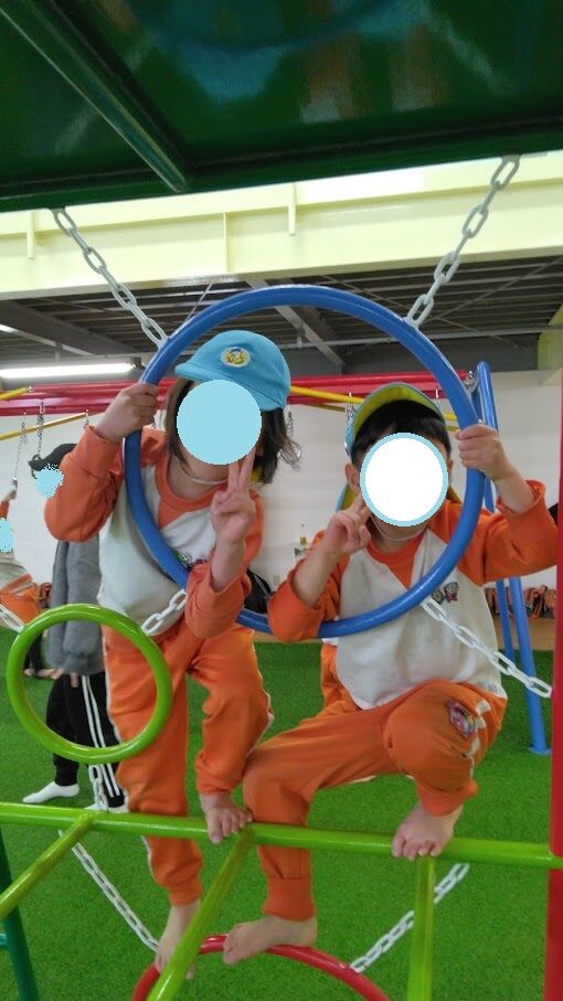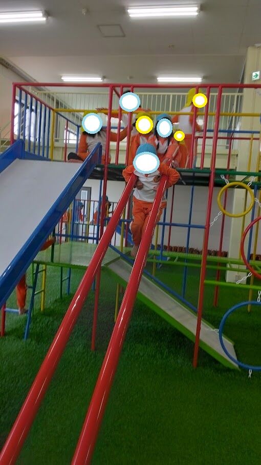 全員が揃った時点で1階に移動して遊具と2階の平均台、ブランコでもたくさん遊びました。