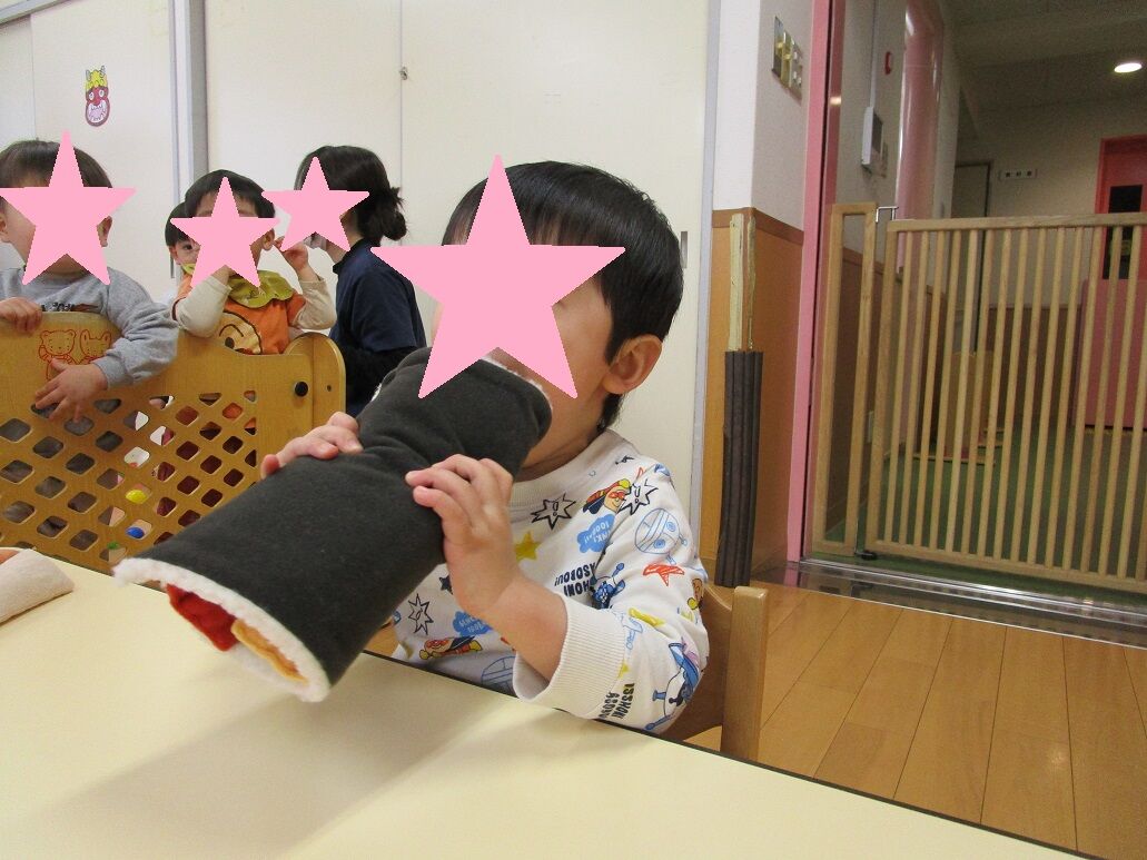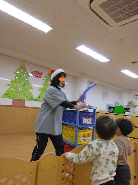 0、1歳と2、3、4、5歳に分かれてのクリスマス会でした!