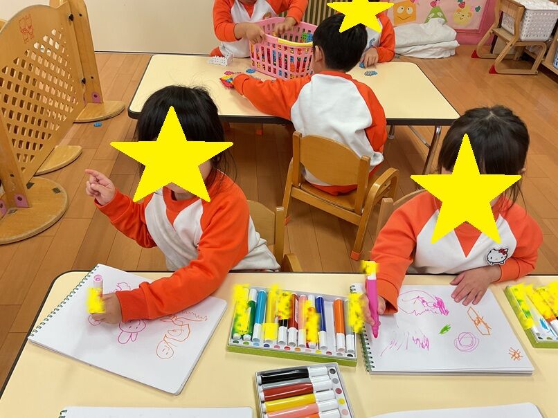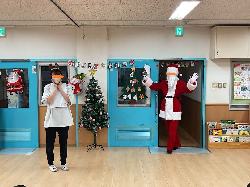 サンタさんが登場すると、みんなからサンタさんへの歌のプレゼント🎁「上手だね!」と褒めてもらいました👏その後は、サンタさんへの質問コーナーをしました。「どこからきたの?」「サンタさんの好きなおやつはなに?」「サンタさんはどんな気持ちでプレゼントを渡しているの?」など色んな質問が出ましたよ。