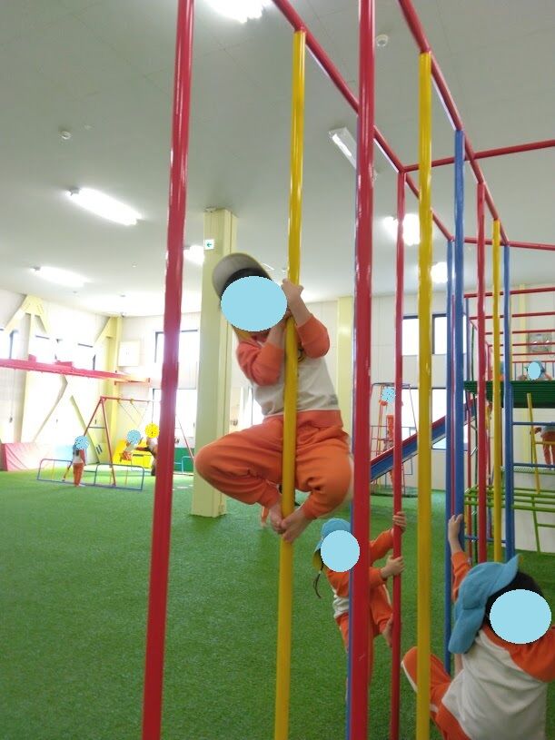 登り棒に初めて挑戦する子もいましたが、回を重ねる毎に少しずつ上手になり、「先生、見て」と嬉しそうに見せてくれました。