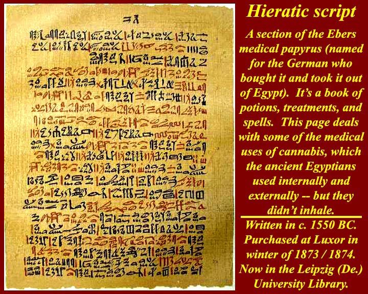 古代エジプトでは石に刻むためのヒエログリフ(聖刻文字)と筆記用のヒエラティック(神官文字)の両方が並んで発達し、後にヒエラティックを崩した簡略文字であるデモティックが作られたと考えられる。ただし、デモティック書体で木や石に刻んだものも多く残っている。