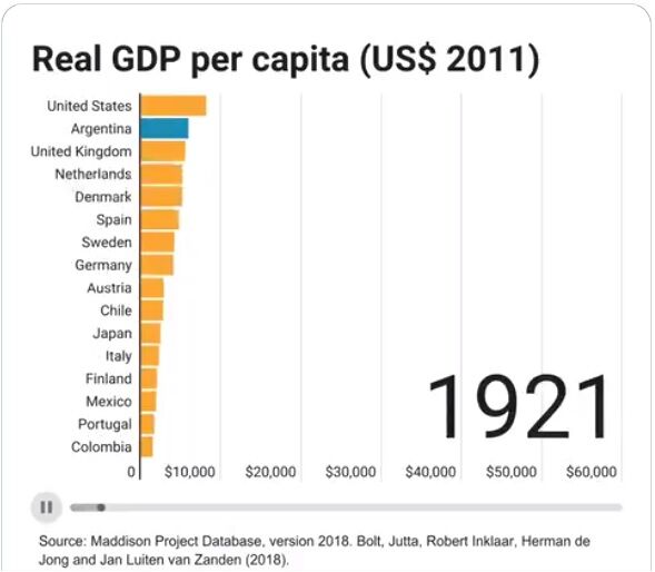 1913年の時点でアルゼンチンの1人あたり実質GDPはドイツやフランスより高かった