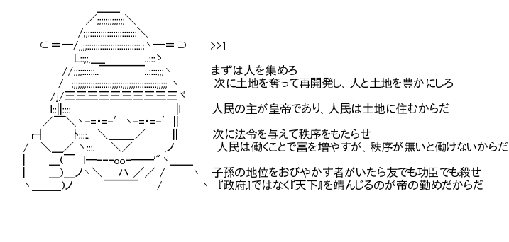 天下を志したなら、まず名声ばかり立派な小物をヨイショして宣伝し、そいつに兵と能吏を集めさせて彼らを指導して敵を退け、荒廃した土地を再開発して困窮した人民に与え法令を行き渡らせて賞罰をはっきりさせ、上下を結びつけて一体化させれば天命を得られるだろう