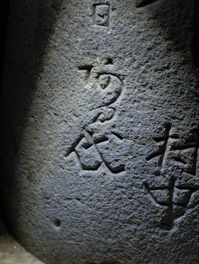 製作年月日の下にこんな文字が彫ってあるのですが、あいにく何と書いてあるのか読めません。