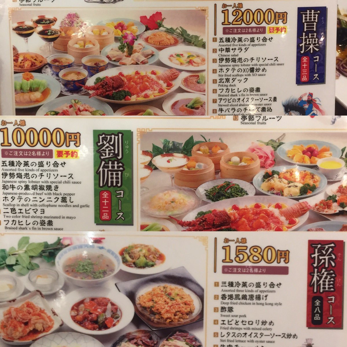【J】中華料理屋「曹操コース1万2000円!!劉備コース1万円!!孫権コースッッ