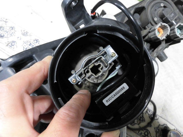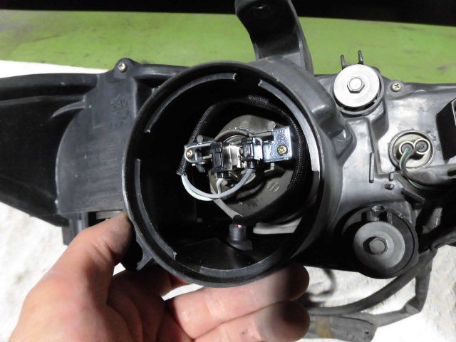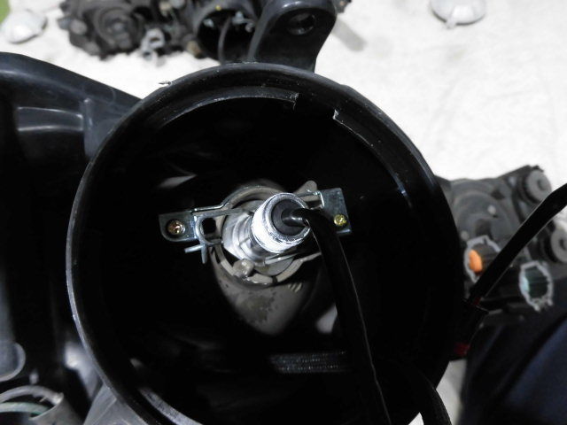ヘッドライトが外せました。付いていたハロゲンバルブはやっぱり球切れでした。