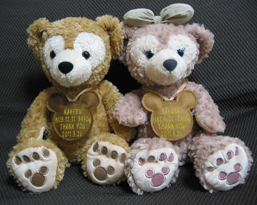 いままで、ダッフィー、シェリーメイ、トトロ、めいちゃん、スヌーピー、チップ&デール、千葉ロッテマーくん、モカ&プリン、ミッフィー、くったりコリラックマ、リラックマ、チェブラーシカ、ガチャピン、ココ&ナツ、スージーズーブーフ、チョッパー、猫、ブタ、バズライトイヤー、トイストーリエイリアン、阪神トラッキーなどいろいろなぬいぐるみをウエイトドールにしてお届けしています。