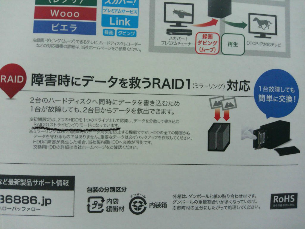 小さく「初期設定時はRAID0です」って書いてますが