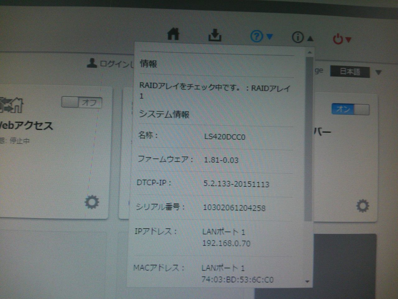 ハードディスクが2台搭載されているNAS