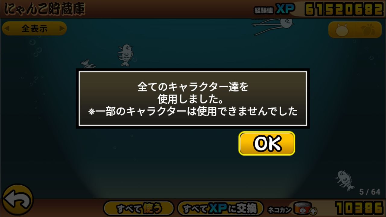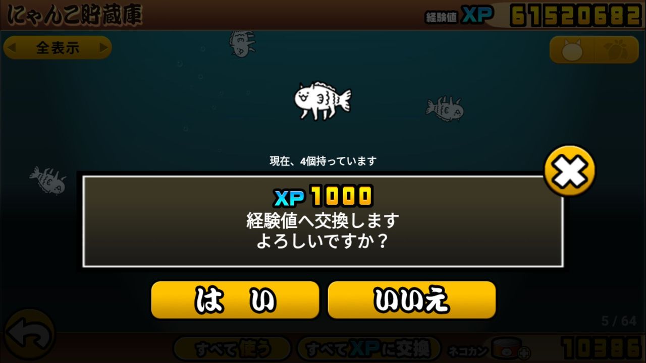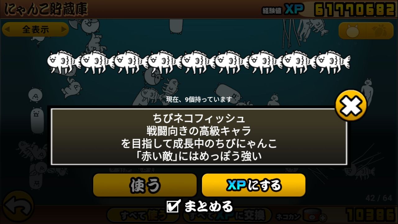 さ・・・て・・・。かなりの数のフィッシュとキモネコが出ちゃった気がするんですけど、