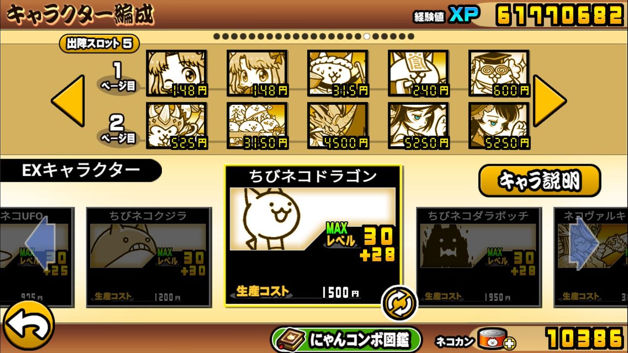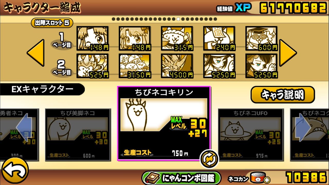 基本キャラたちと違って未だにちびにゃんこたちのLv解放限界が+30までしかない。
