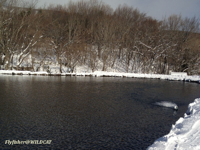 出発日の金曜の夜、東北道は福島で大雪、一時郡山から先が通行止めになりましたが、どうにかクリアして福島飯坂まで行き、伊達市にある24時間営業の温泉施設で温泉に入って仮眠、朝になってから目的地の宮城蔵王にある不忘の管理釣り場で向かいました。