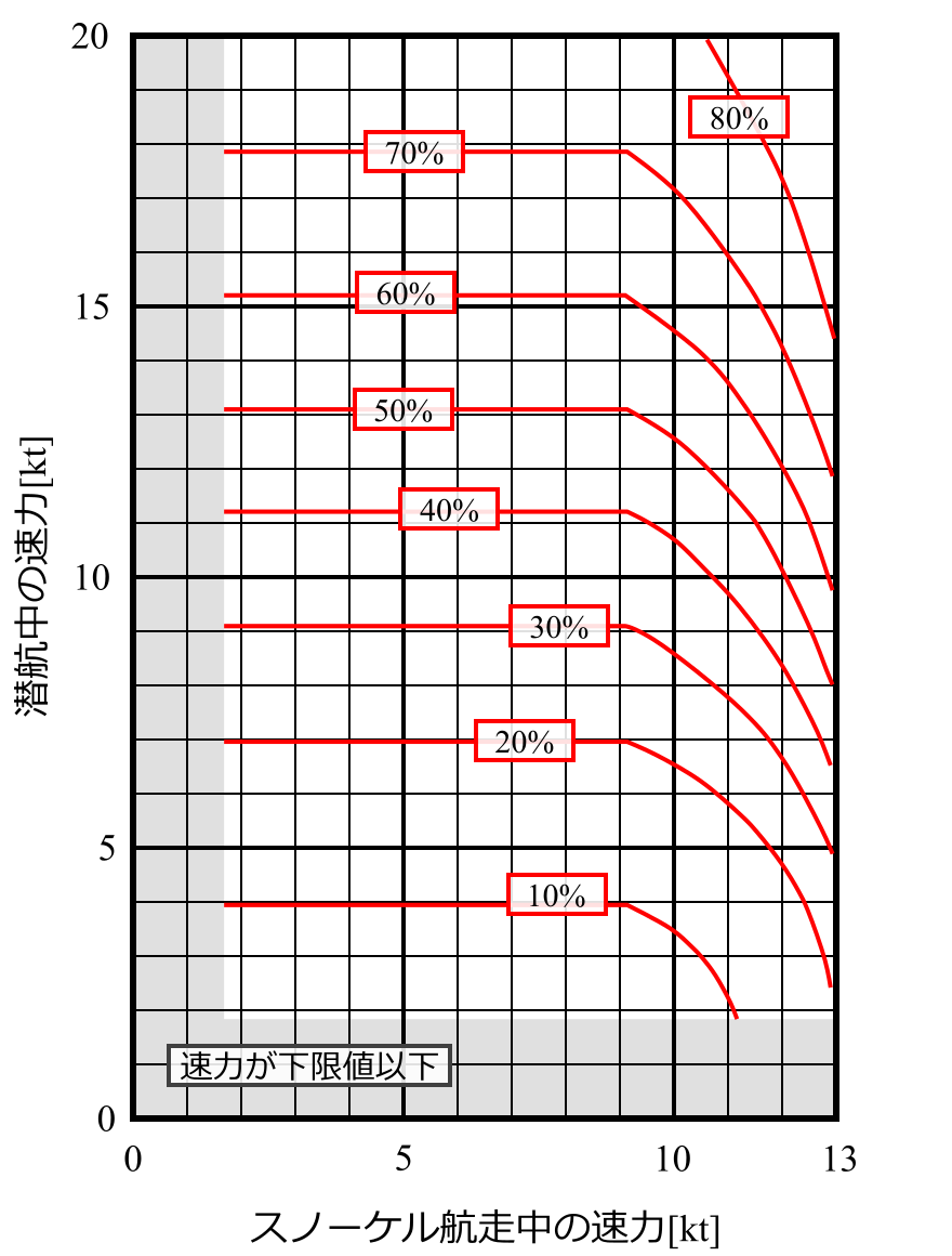 - [ア]と[ソ]はいずれも低空発射-高空巡航-終末シースキミング(Lo-Hi-Lo)での値として規定されているので、[ソ]の値は『低空』と呼べる範囲に収まるはずである。