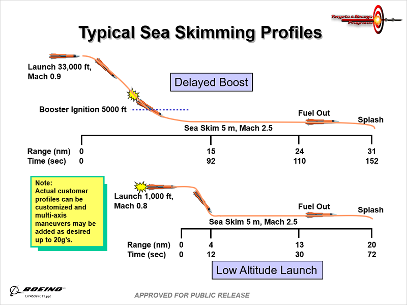 - 低空発射-高空巡航-終末シースキミング(Lo-Hi-Lo)