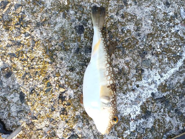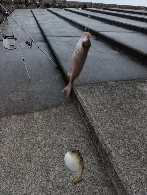 もちろんカレイ狙いなんですが明るくなったら当たってくるのはフグだけ
