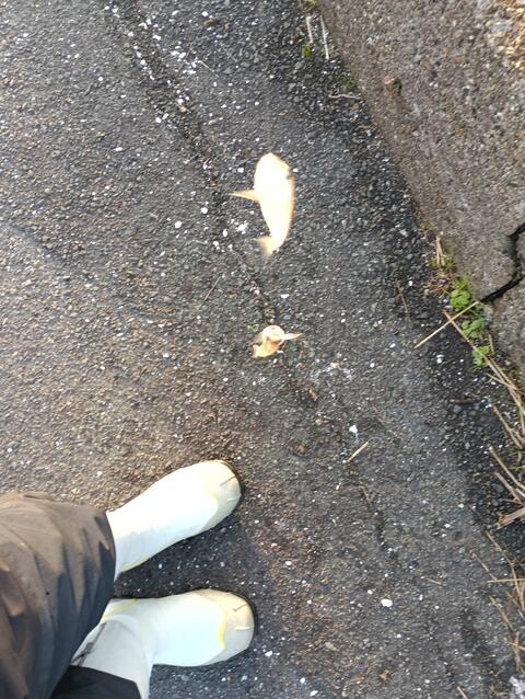 この間テトラからずり落ちないように必死のパッチで魚との戦いに勝利。