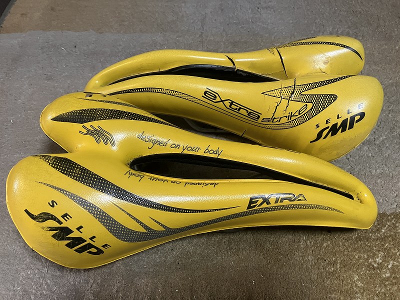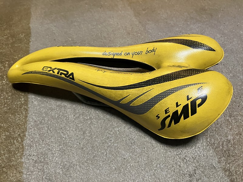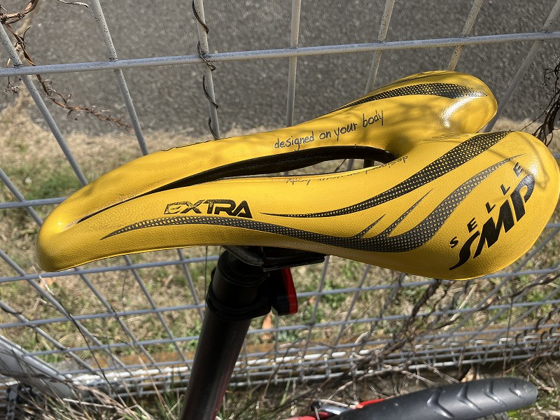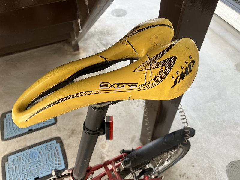 走ってみるとクッション性が復活して、座面もつるつるでいい感じです。交換前のサドルは2008年にクリーンスピード用に新品で購入してから18年間も使ったんですね。お疲れさまでした!!ということで廃棄処分です。