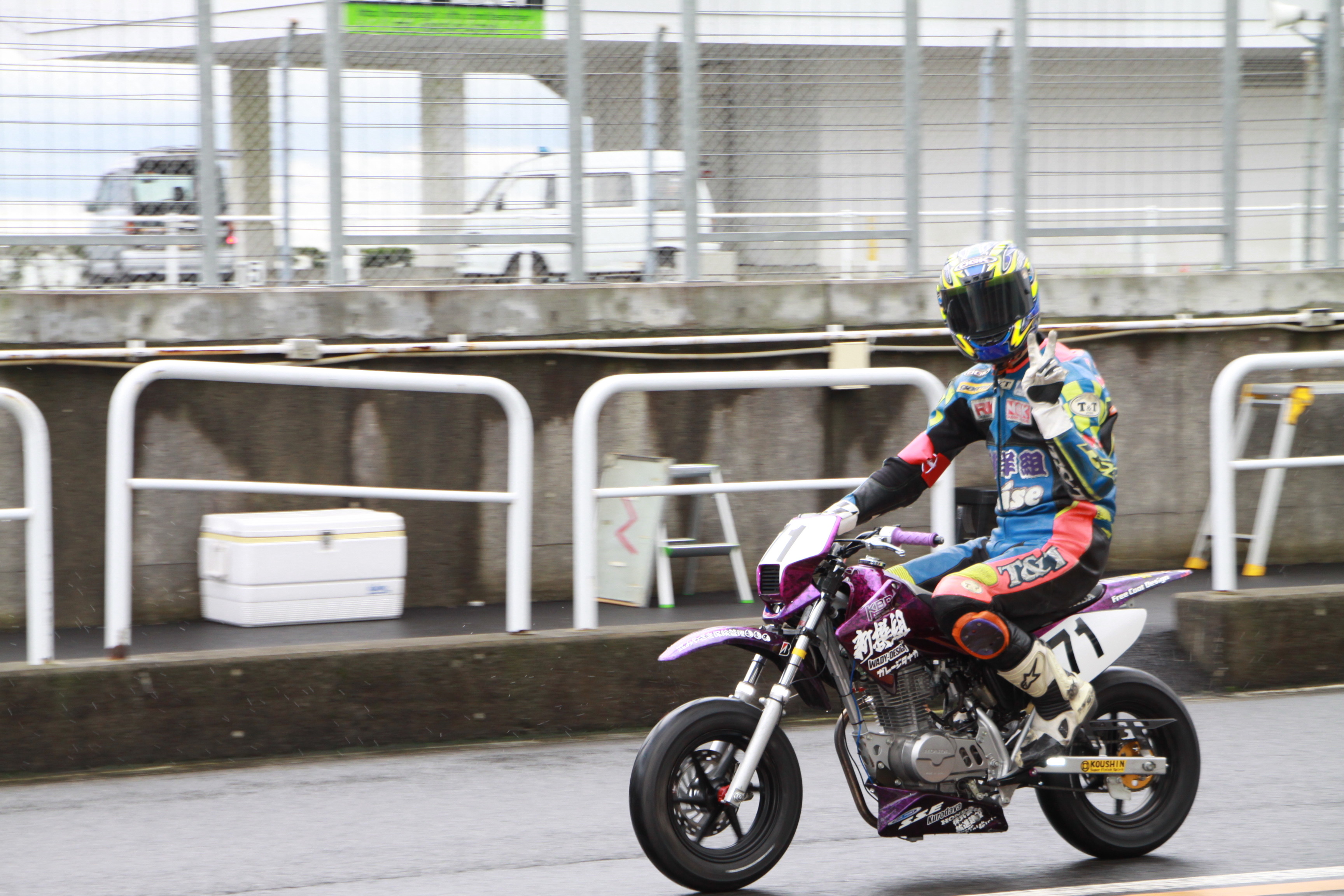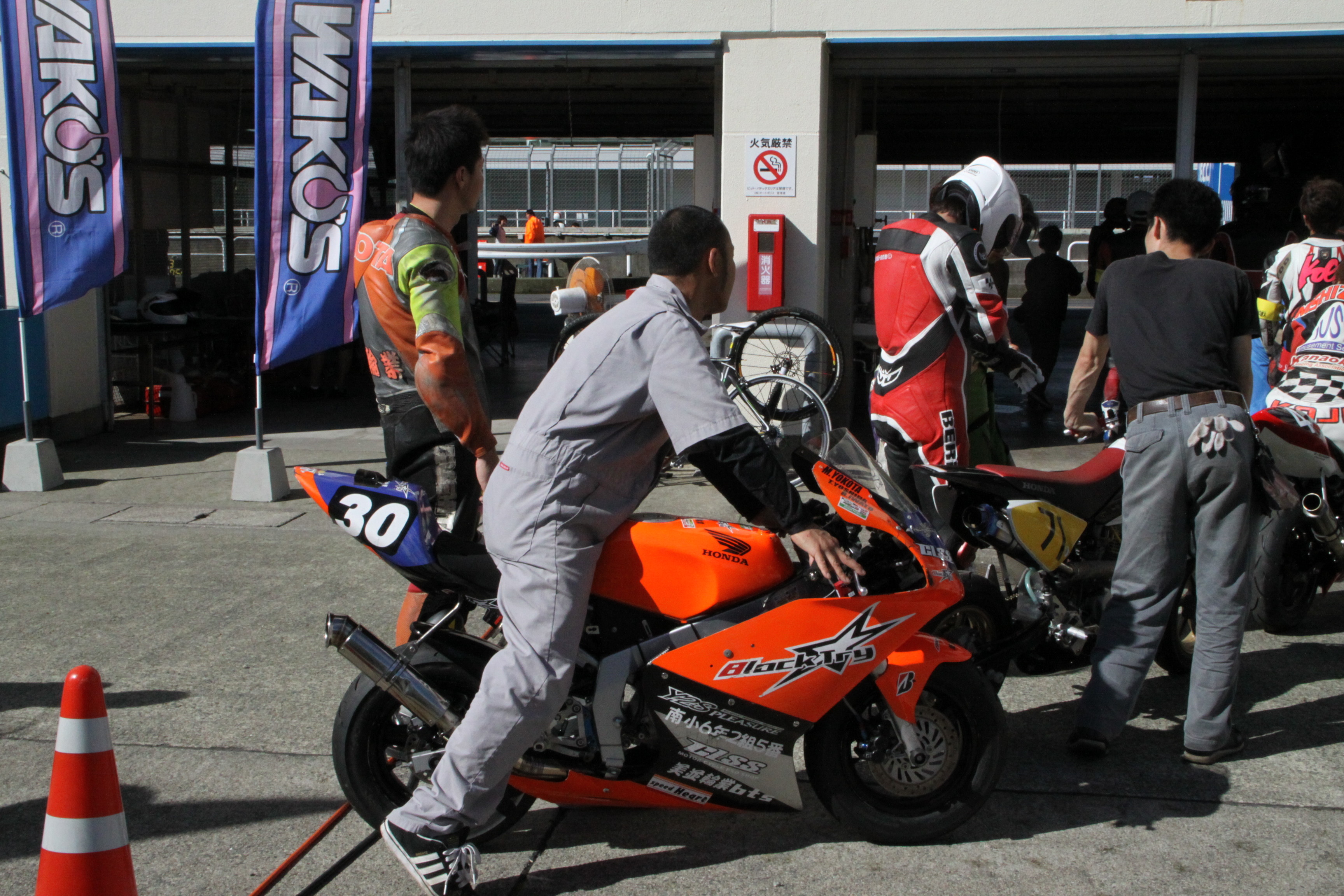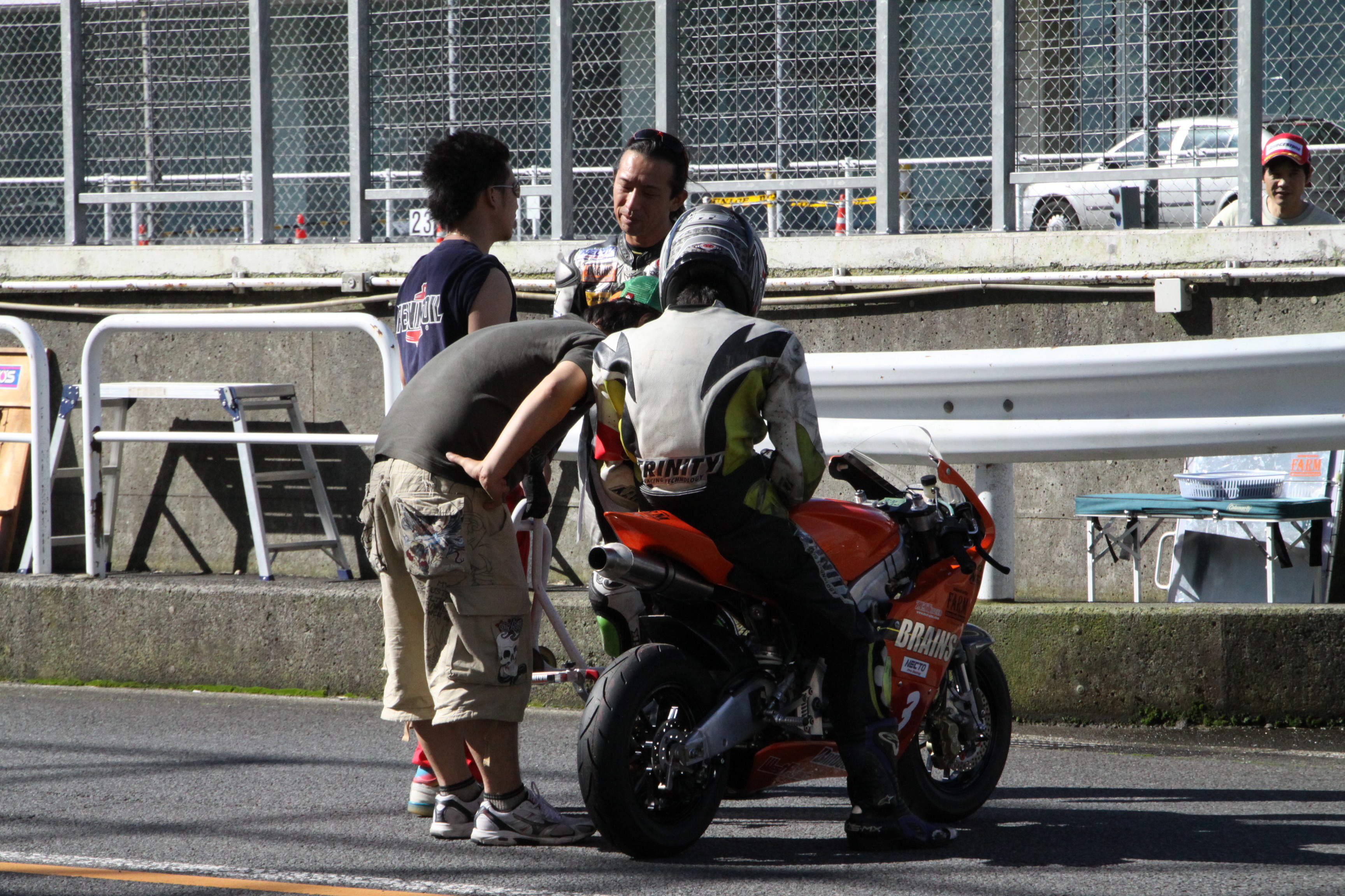 結局、予選アタック的に一番有利なライダーを僅か1周しか走らせず予選結果17位。。。翌日の決勝に不穏な空気立ち込めるPITの中で「クロちゃん」に励まされながらの作業