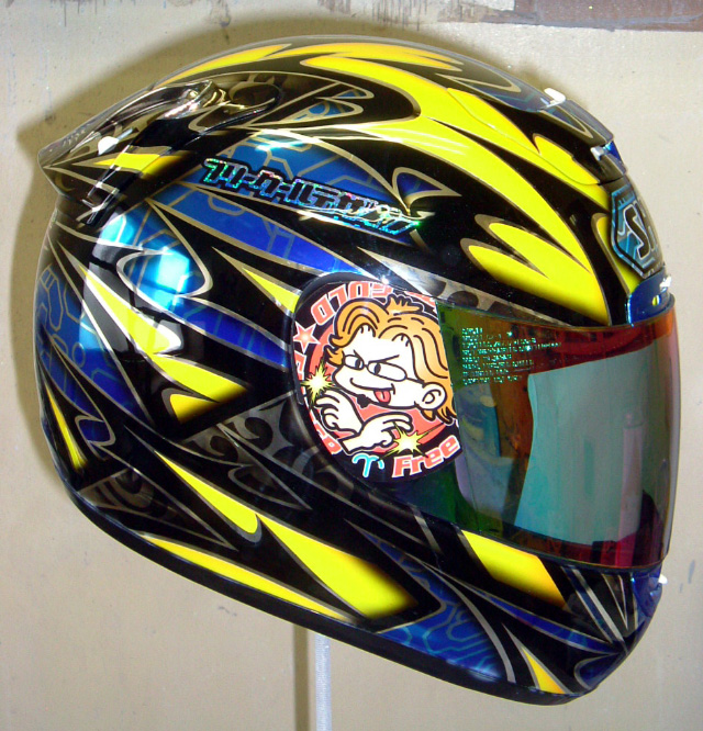 こちらはワタシ達のチームがステッカーやツナギのデザイン等でお世話になっているWADYさんのNewヘルメットです。FCDさんのとこでペイントしたものですが未だ未発表モノです。こっそりワタシに送ってきた写真を公開しちゃいました。ゴメンナサイ。。。