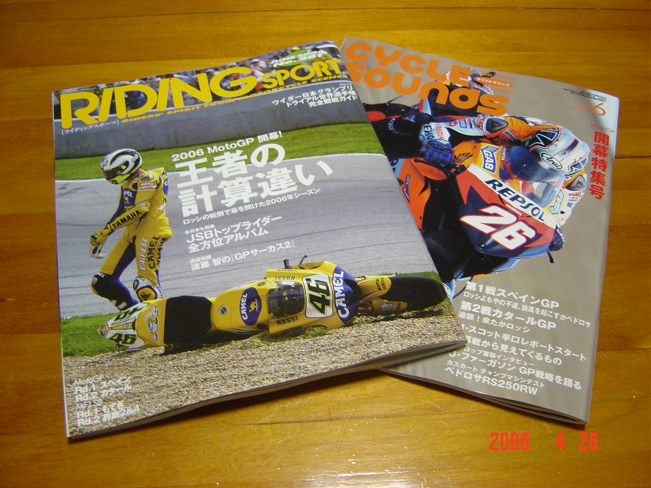 ナニナニ「王者の計算違い?」う〜ん、気になる記事だけどmotoGP初戦の結果は知ってるし記事の内容も大体察しが付く。それよりも今年のロッシもカッコイイナ〜って感じですね。
