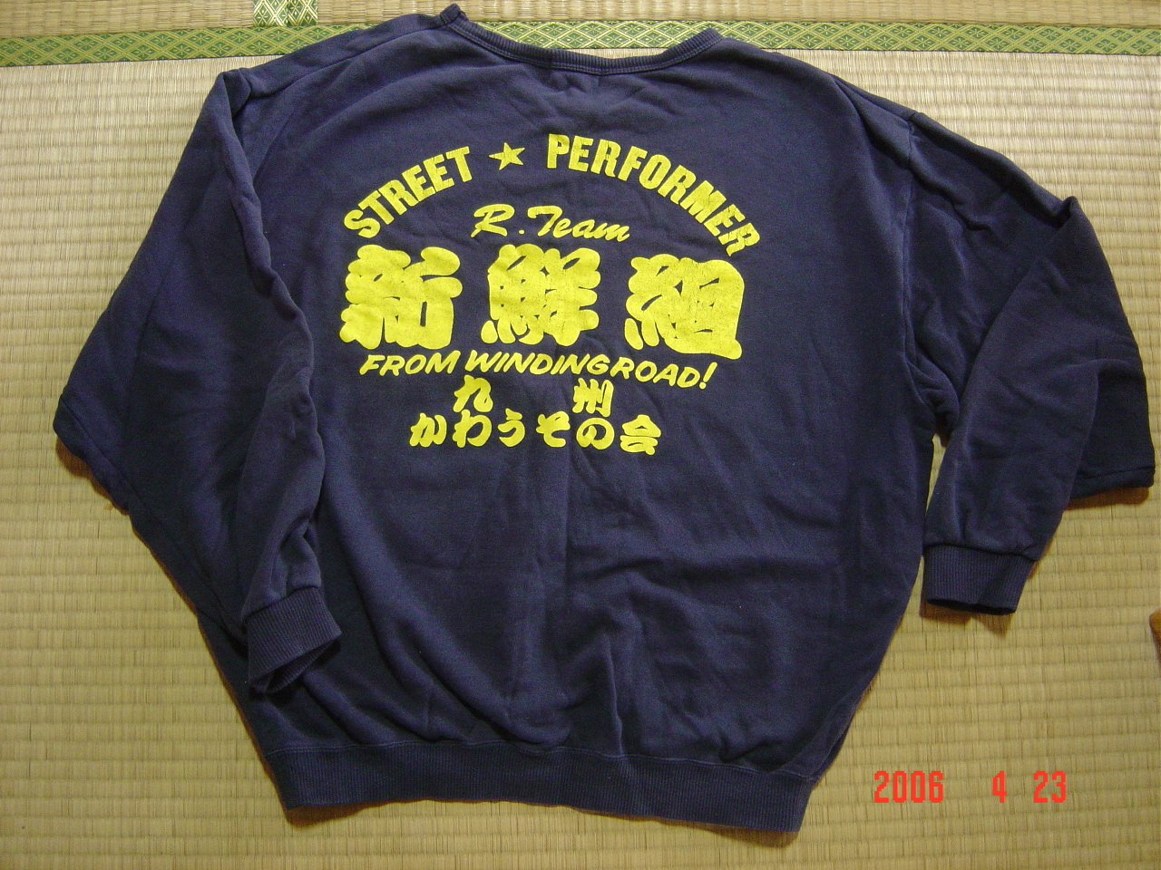 タンスの衣替えをしていた嫁が「スゴイのが出てきたよ〜!」とワタシを呼びました。何やら紺色の衣類を握っている様子。何かな?と思い近付いて見るとそれはまさしく10数年前友人達と作ったチームトレーナーです。