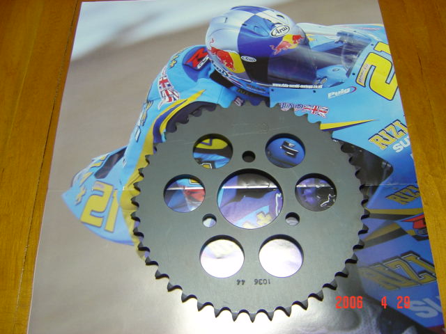 二日酔いの残る今日、数日前にオークションにて購入したスプロケットが届きました。アルミ製の44丁(2,500円)です。