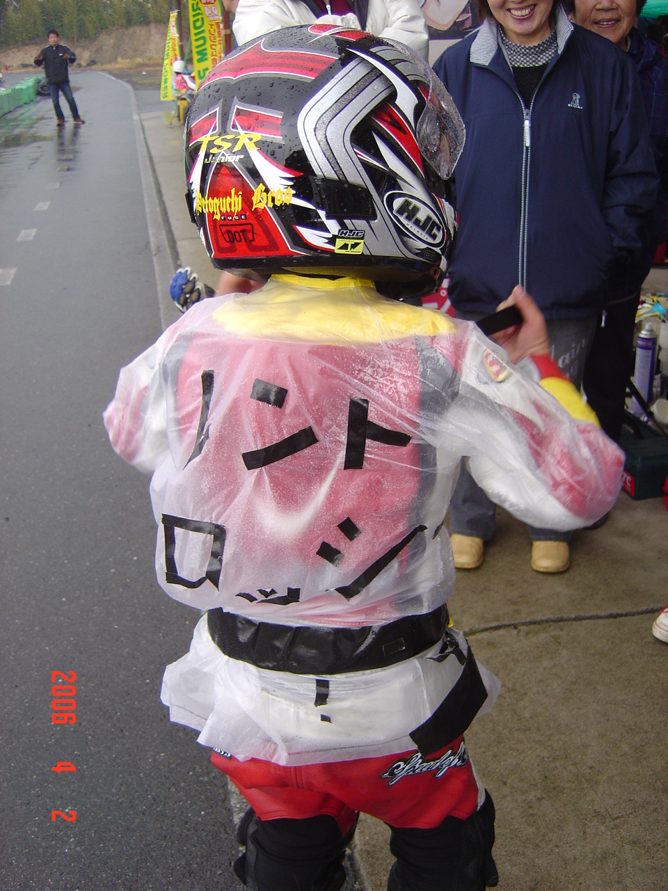 子供っていいですよね。背中に書かれた「レント ロッシ」。彼は新鮮組のSグチ君、レントは名前で、ロッシはバイク乗りなら誰でも知っているチャンピオンROSSIです。アメの中のレース、皆がやる気の失せるレースながら背中に書かれたこの名前だけで彼のモチベーションは高くなります。いわゆる「その気になる」と言うヤツですね。