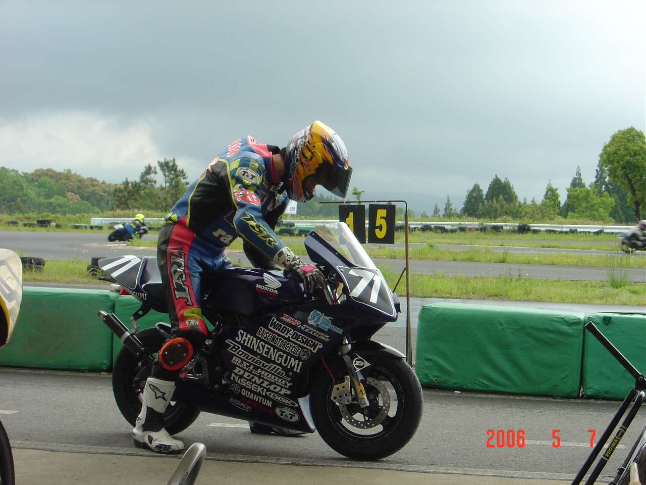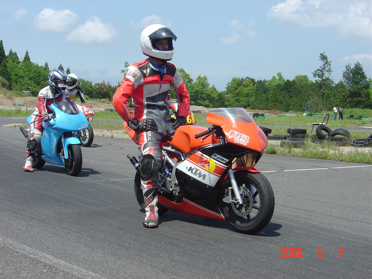 迎えた決勝、何時になくコース上にはカメラを持った人が沢山います。(その中にOガタ兄くんもいました)こ〜りゃ目立つしかない!と思い決勝は自慢のFCD&WDカウルを投入。これが後に悲劇を生みます。