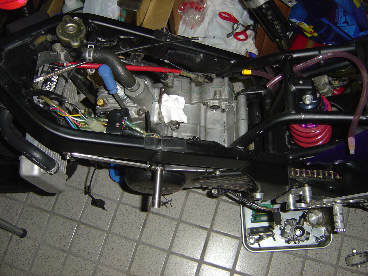 どうしてmini用のインシュレーターにこだわっていたのかっていうともちろんビジュアルです。ワタシの車両はNSR-miniではなくNSR50だからこの部品には混合オイル用のラインがありました。ですからこの決定的に違う部品を交換してNSR-miniにしたかったのです。もう一つの理由はオイルラインがあるとラム圧ボックスに納まりがよくないから・・・。お陰で念願叶いました。どこから見てもminiです。ちなみに代金は3,602円です。(リヤディスクが4,900円)