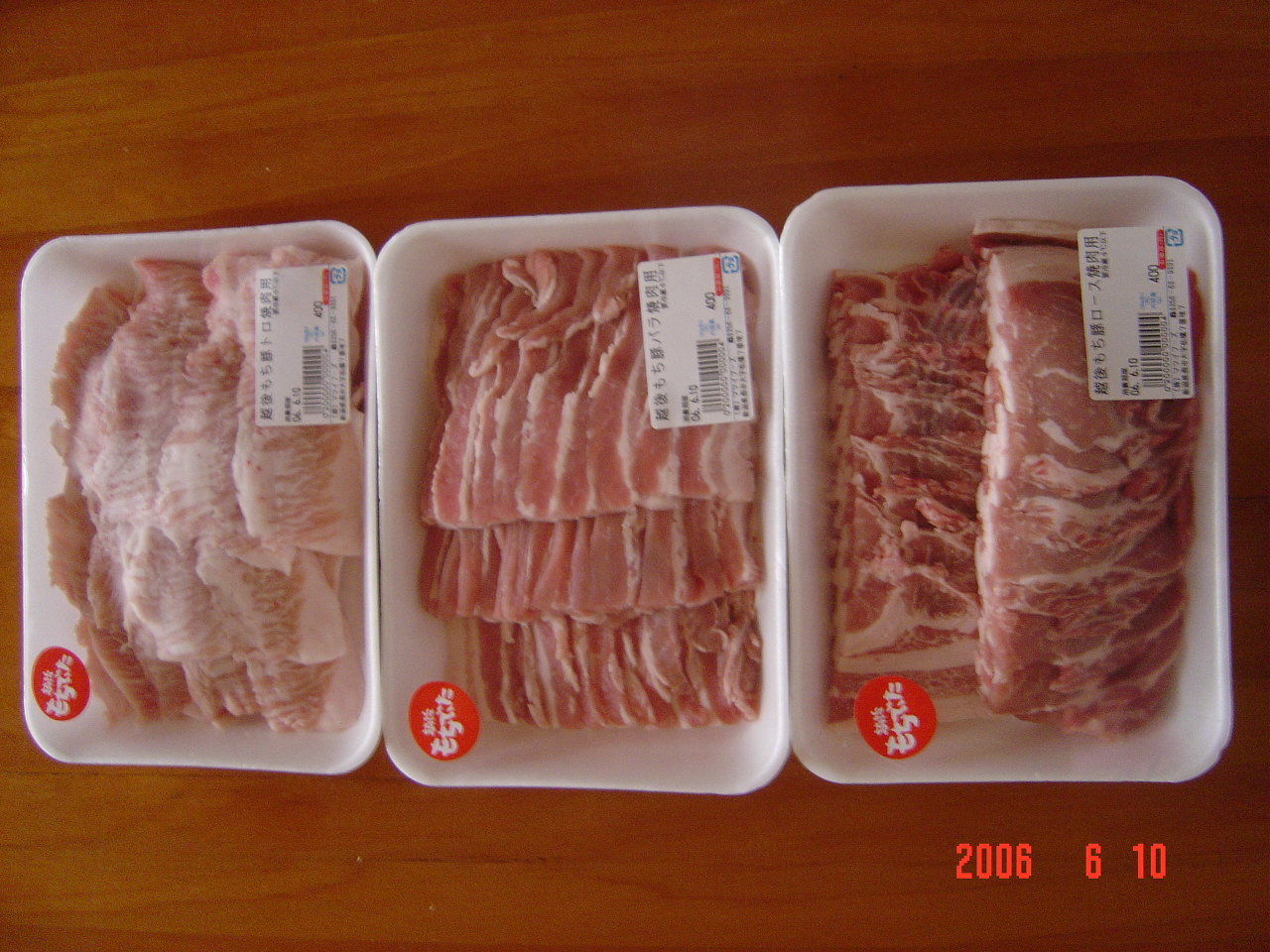 ある預金の懸賞で「もちブタ詰め合わせ(トンとろ、豚バラ、ロース各400g)が当たり、今日到着しました。見れば見るほど美味しそうな肉で焼肉するには持って来いです、眺めていると「どうぞ食べて見て下さい!」とブタさんが話しかけて来そうです。
