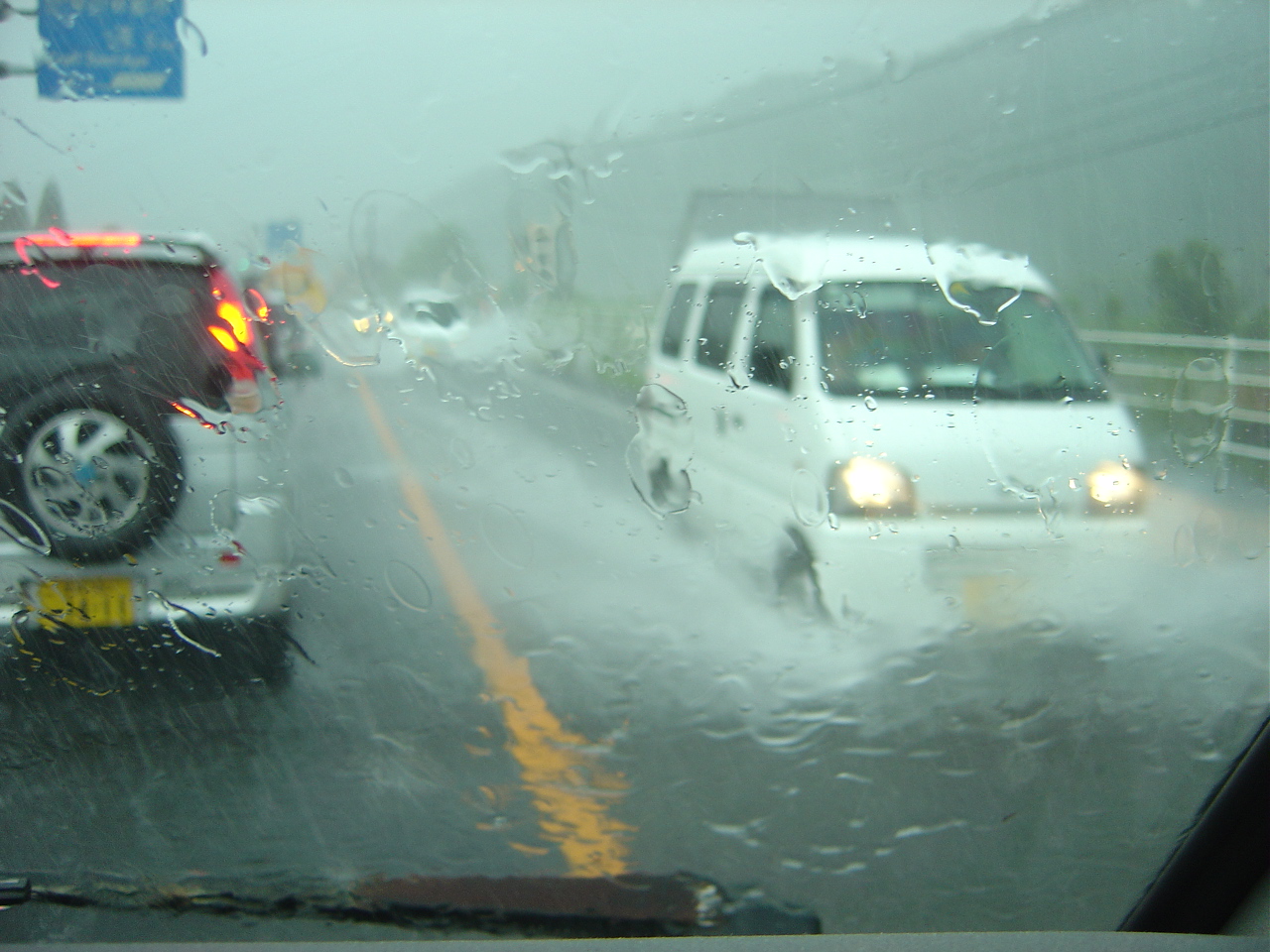写真は車で走行中に対向車線の車を撮ってみました。スゴイアメでしょう?