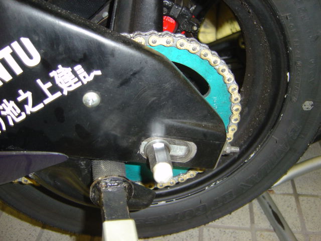 を入れているのではありません。これは、レースの数日前に「新撰組」のセドロくんが完成させたクイックチャージャーなのです。構造はいたって簡単ですが、この装置のお陰で燃料給油の時間をかなり短縮させる事が出来ます。(大体5Lのガソリンを5秒程度でタンクに入れる事が出来ます)耐久レースはこの給油の時間が非常に重要でライダーのレベルが拮抗すればするほど「ライバルのミス待ち」や「ピットインした際のロスを如何に減らすか」等ただ速いだけではクリヤー出来ない勝負になってきます。ですからセドロくんの造ってくれたクイックチャージャーのお陰でこれからの耐久レースを有利に進めることが出来ます。