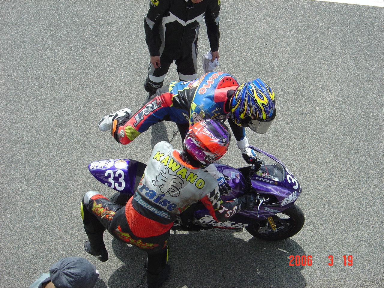 そのうち、FRGPを観戦に来ると思います。激しく事故を起こし、左腕には痛々しい縫合の痕がありましたが、相当バイクが好きなようです。「出来るだけ早く復活してレースに出てみたいです!」って言ってました。