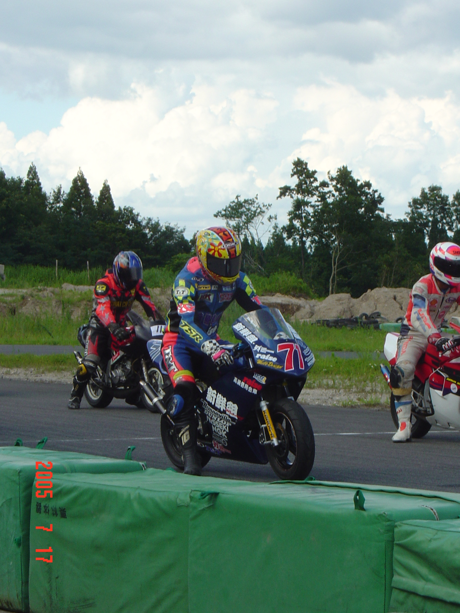 コースの何処で離れるのかな〜って考えてみるとバックストレート後のヘアピンから離れていくのです・・・分かっているのに着いていけないモドカシサ。バイクの調子が良いだけに自分が情けないですね〜ビビッてるんですよネ。