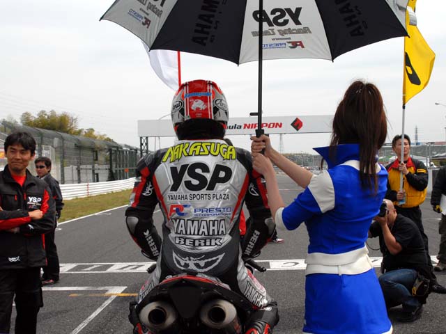 結局、途中小雨がパラついたもののその後は殆どAME降らず、練習走行こそレインタイヤでの走行となったものの、予選、決勝はほぼドライコンディションで行なわれました。
