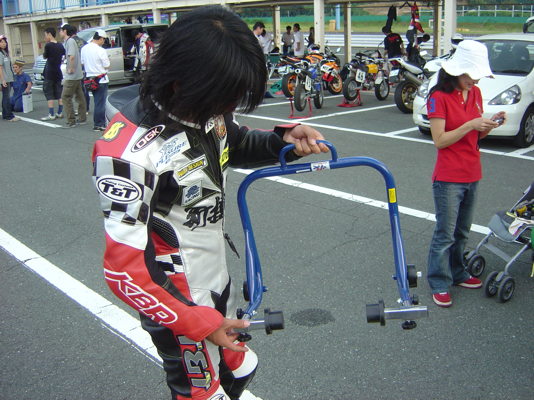 ところで、この日はワタシ達のサーキット到着後からバイクの積み下ろし、タイヤウォーマーのセット、スタンドの運搬、車検や各整備の手伝いを積極的にしてもらいました。