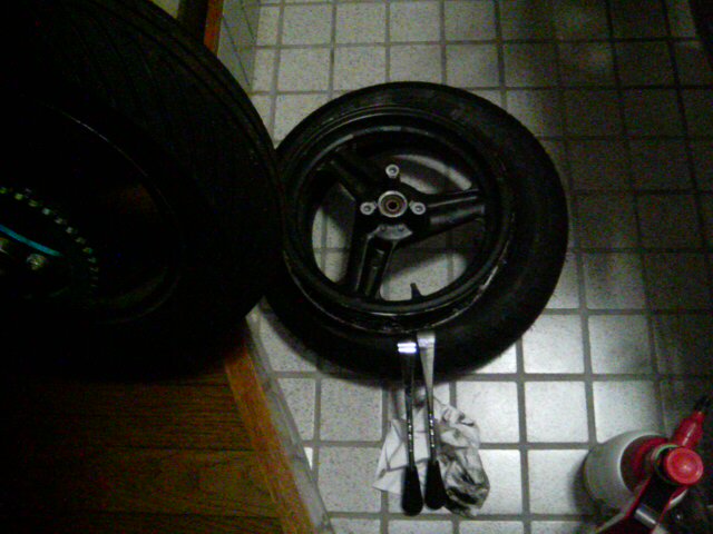 こんな空間でタイヤ交換が出来るかっ!!!って感じですが、外の気温は6℃。とても外では出来ませんし、バイクを外に出してタイヤ交換を中でするってのもイタダケマセン。チャチャッと終わらせて、明日の仕事の為に寝ようと思います。そうそう、明日と言えば同チームの「ターボ」がワタシの家に遊びに来ます。